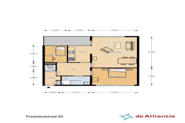 Het adres van deze woning is Presidentstraat 60 te Almere. Het pand heeft een oppervlakte van 74m² en heeft 3 kamers kamers waarvan 2 slaapkamers. De geschatte waarde van deze woning is € 140.000.