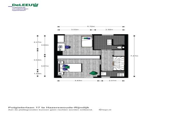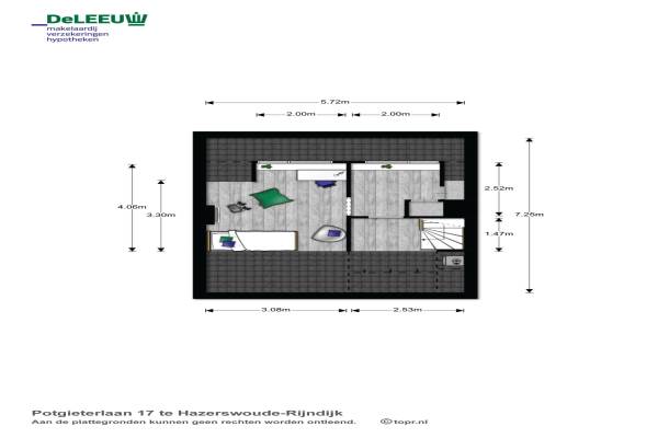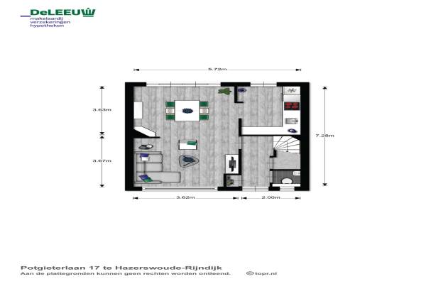 Het adres van deze woning uit 1969 is Potgieterlaan 17 te Hazerswoude-Rijndijk. Het pand heeft een oppervlakte van 107m² en een perceeloppervlakte van 151m² en heeft 5 kamers kamers waarvan 3 slaapkamers. De geschatte waarde van deze woning is € 259.000.