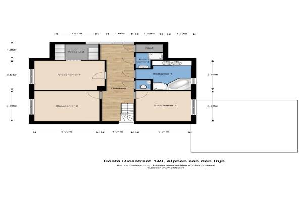 Het adres van deze woning uit 1994 is Costa Ricastraat 149 te Alphen aan den Rijn. Het pand heeft een oppervlakte van 210m² en een perceeloppervlakte van 412m² en heeft 7 kamers kamers waarvan 4 slaapkamers. De geschatte waarde van deze woning is € 715.000.