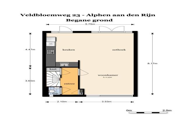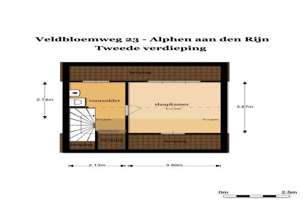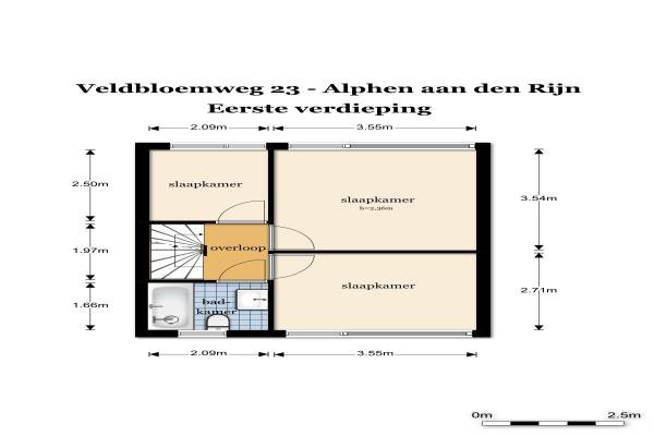 Het adres van deze woning uit 1967 is Veldbloemweg 23 te Alphen aan den Rijn. Het pand heeft een oppervlakte van 103m² en een perceeloppervlakte van 139m² en heeft 5 kamers kamers waarvan 4 slaapkamers. De geschatte waarde van deze woning is € 225.000.