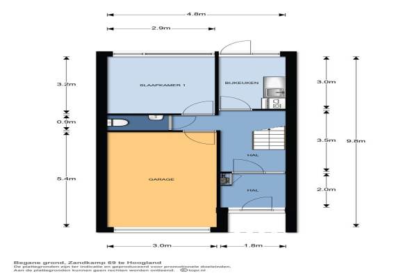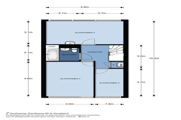 Het adres van deze woning uit 1972 is Zandkamp 69 te Hoogland. Het pand heeft een oppervlakte van 123m² en een perceeloppervlakte van 140m² en heeft 5 kamers kamers waarvan 4 slaapkamers. De geschatte waarde van deze woning is € 275.000.