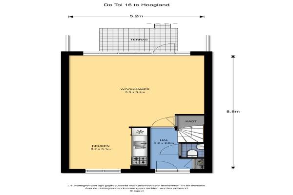 Het adres van deze woning uit 1986 is De Tol 16 te Hoogland. Het pand heeft een oppervlakte van 107m² en een perceeloppervlakte van 134m² en heeft 5 kamers kamers waarvan 4 slaapkamers. De geschatte waarde van deze woning is € 259.000.