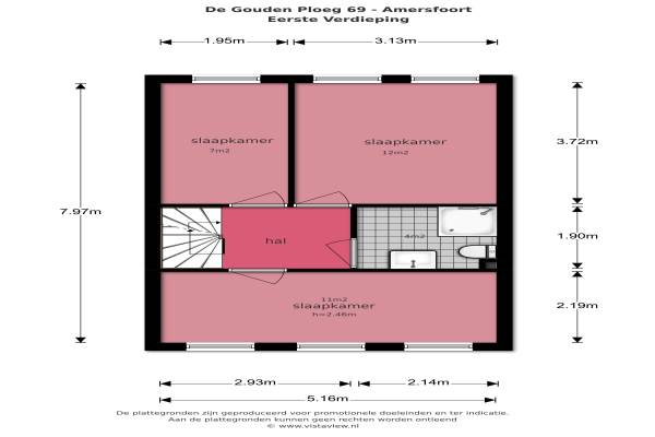 Het adres van deze woning uit 1996 is De Gouden Ploeg 69 te Amersfoort. Het pand heeft een oppervlakte van 104m² en een perceeloppervlakte van 133m² en heeft 6 kamers kamers waarvan 5 slaapkamers. De geschatte waarde van deze woning is € 275.000.