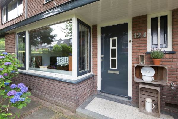 Het adres van deze woning uit 1935 is Spaarnestraat 124 te Amersfoort. Het pand heeft een oppervlakte van 110m² en een perceeloppervlakte van 175m² en heeft 4 kamers kamers waarvan 3 slaapkamers. De geschatte waarde van deze woning is € 375.000.