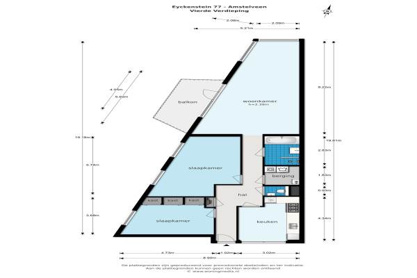 Het adres van deze woning uit 1994 is Eyckenstein 77 te Amstelveen. Het pand heeft een oppervlakte van 109m² en heeft 3 kamers kamers waarvan 2 slaapkamers. De geschatte waarde van deze woning is € 375.000.
