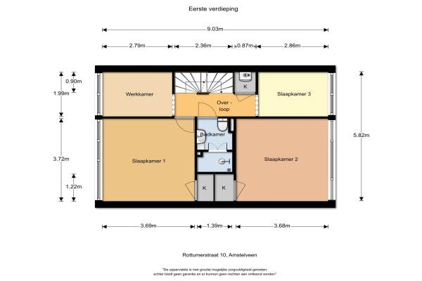 Het adres van deze woning uit 1962 is Rottumerstraat 10 te Amstelveen. Het pand heeft een oppervlakte van 150m² en een perceeloppervlakte van 158m² en heeft 7 kamers kamers waarvan 6 slaapkamers. De geschatte waarde van deze woning is € 520.000.
