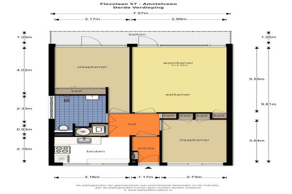 Het adres van deze woning uit 1967 is Flevolaan 57 te Amstelveen. Het pand heeft een oppervlakte van 71m² en heeft 3 kamers kamers waarvan 2 slaapkamers. De geschatte waarde van deze woning is € 335.000.