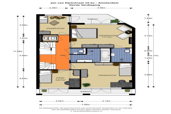 Het adres van deze woning uit 1927 is Jan van Eijckstraat 10boven te Amsterdam. Het pand heeft een oppervlakte van 210m² en heeft 6 kamers kamers waarvan 5 slaapkamers. De geschatte waarde van deze woning is € 1.750.000.