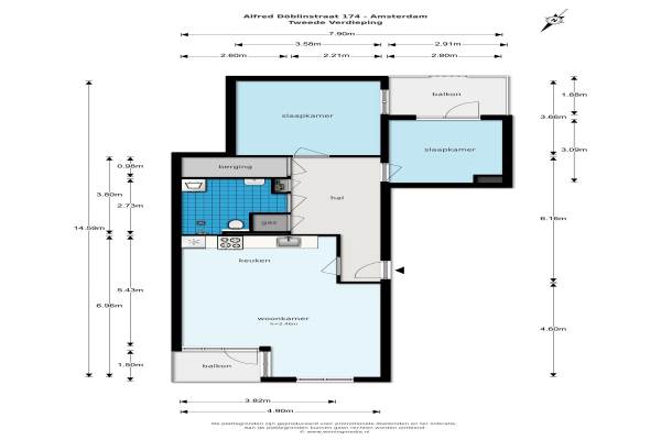 Het adres van deze woning uit 1985 is Alfred Döblinstraat 174 te Amsterdam. Het pand heeft een oppervlakte van 73m² en heeft 3 kamers kamers waarvan 2 slaapkamers. De geschatte waarde van deze woning is € 239.000.