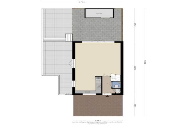 75 m² (15,00 meter diep en 5,00 meter breed)