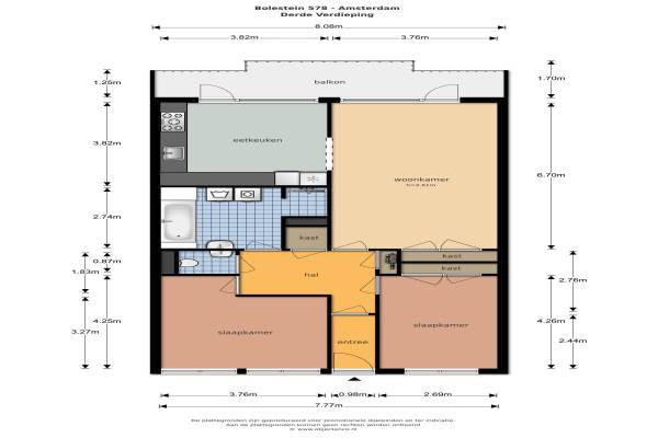 Het adres van deze woning uit 1969 is Bolestein 578 te Amsterdam. Het pand heeft een oppervlakte van 94m² en heeft 3 kamers kamers waarvan 2 slaapkamers. De geschatte waarde van deze woning is € 400.000.