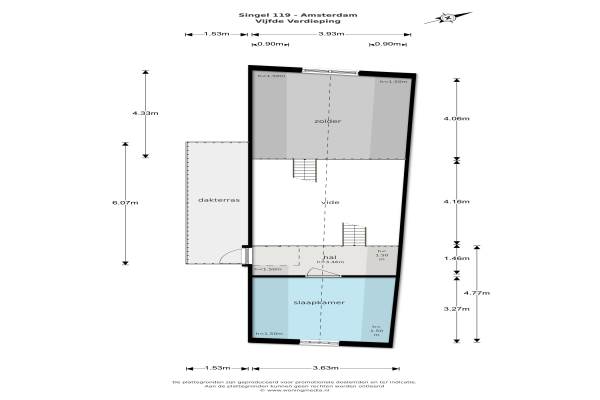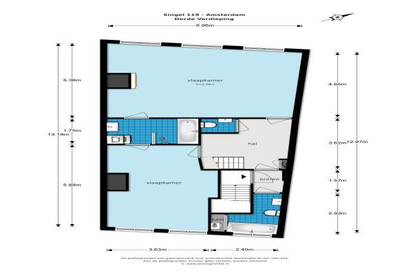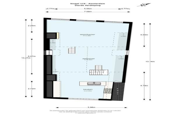 Het adres van deze woning uit 1609 is Singel 119 te Amsterdam. Het pand heeft een oppervlakte van 174m² en heeft 5 kamers kamers waarvan 3 slaapkamers. De geschatte waarde van deze woning is € 1.250.000.