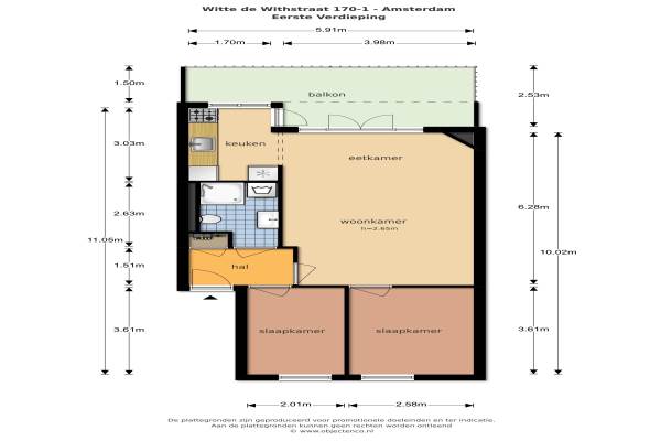 Het adres van deze woning uit 1925 is Witte de Withstraat 170 te Amsterdam. Het pand heeft 3 kamers kamers waarvan 2 slaapkamers. De geschatte waarde van deze woning is € 375.000.