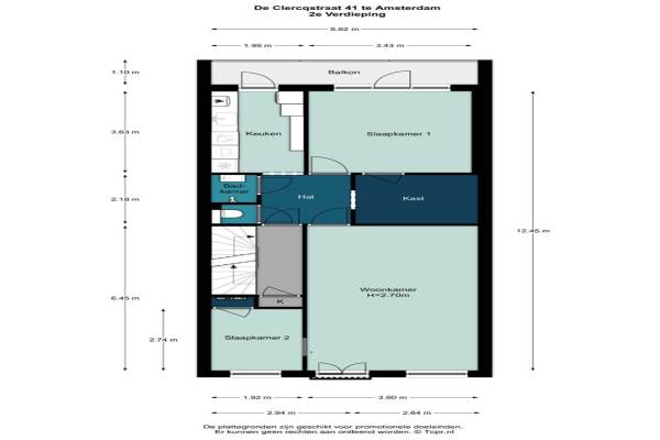 Het adres van deze woning uit 1901 is De Clercqstraat 412 te AMSTERDAM. Het pand heeft een oppervlakte van 63m² en heeft 4 kamers kamers waarvan 2 slaapkamers. De geschatte waarde van deze woning is € 470.000.