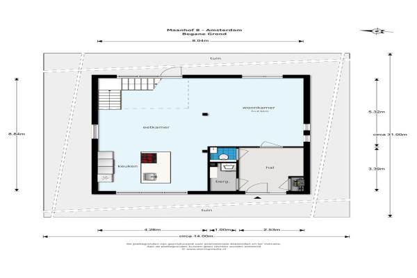 140 m² (10m diep en 14m breed)