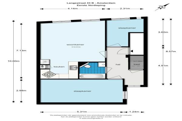 Het adres van deze woning is Langestraat 43 te Amsterdam. Het pand heeft een oppervlakte van 63m² en heeft 3 kamers kamers waarvan 2 slaapkamers. De geschatte waarde van deze woning is € 399.000.