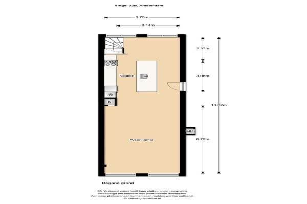 Het adres van deze woning uit 1712 is Singel 22 te Amsterdam. Het pand heeft 3 kamers kamers waarvan 2 slaapkamers. De geschatte waarde van deze woning is € 749.000.