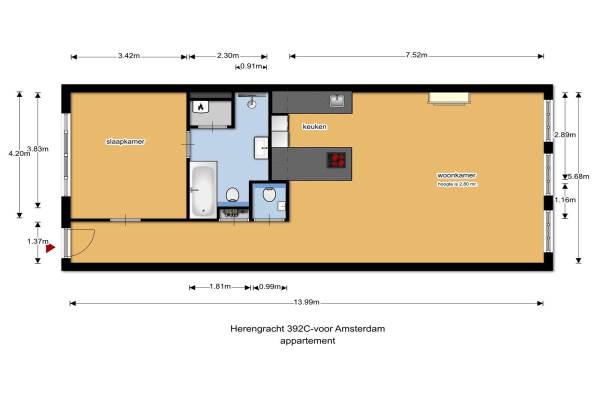 Het adres van deze woning uit 1665 is Herengracht 392 te Amsterdam. Het pand heeft een oppervlakte van 79m² en heeft 2 kamers kamers waarvan 1 slaapkamers. De geschatte waarde van deze woning is € 775.000.