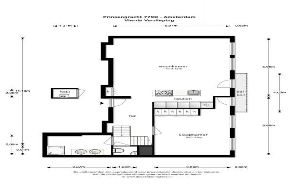 Het adres van deze woning is Prinsengracht 779-D te Amsterdam. Het pand heeft een oppervlakte van 101m² en heeft 3 kamers kamers waarvan 1 slaapkamers. De geschatte waarde van deze woning is € 695.000.