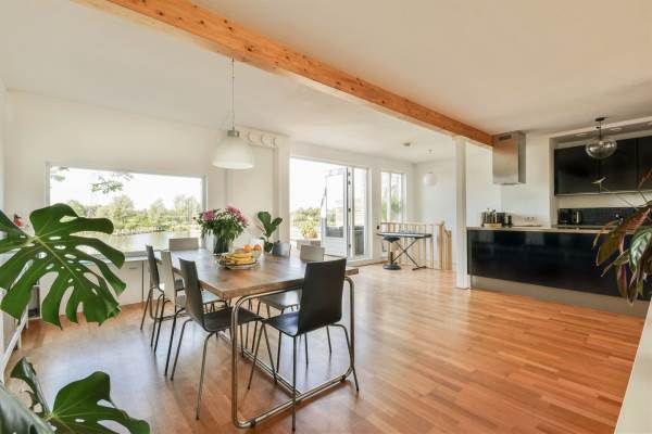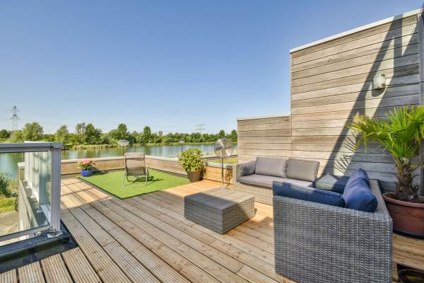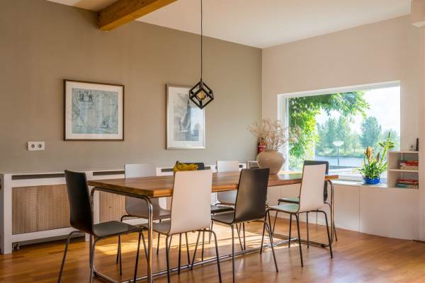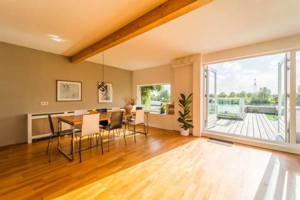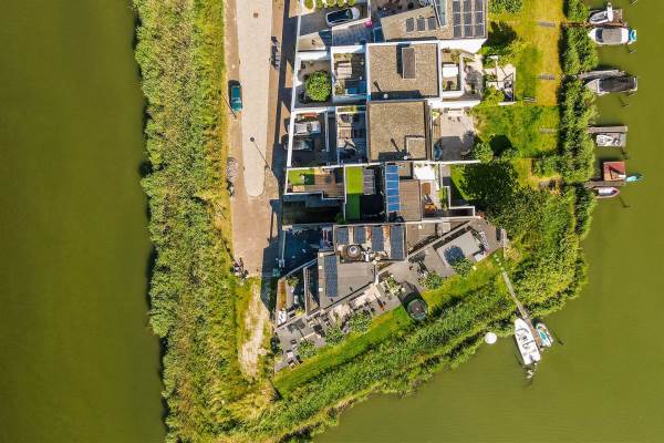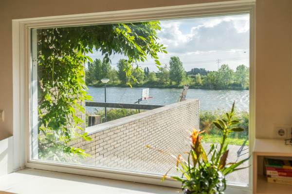 Aan rustige weg, aan vaarwater, aan water, in woonwijk, open ligging en vrij uitzicht