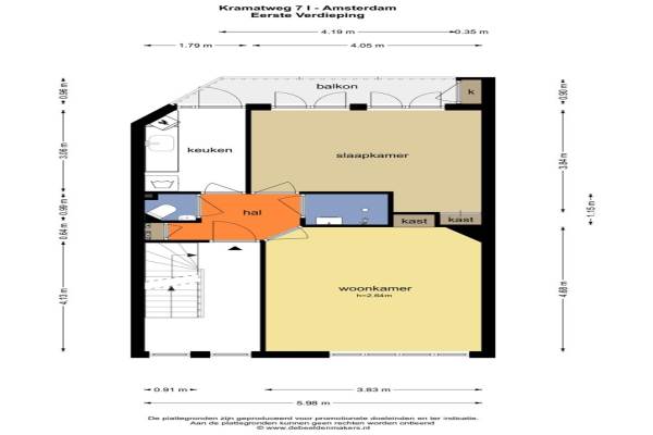 Het adres van deze woning uit 1926 is Kramatweg 71 te AMSTERDAM. Het pand heeft een oppervlakte van 46m² en heeft 2 kamers kamers waarvan 1 slaapkamers. De geschatte waarde van deze woning is € 375.000.