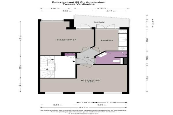 Het adres van deze woning uit 1926 is Bataviastraat 63C te Amsterdam. Het pand heeft een oppervlakte van 45m² en een perceeloppervlakte van 8521m² en heeft 2 kamers kamers waarvan 1 slaapkamers. De geschatte waarde van deze woning is € 375.000.