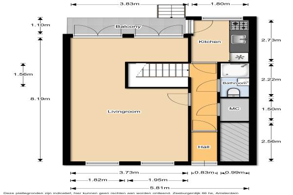 Het adres van deze woning uit 1913 is Zeeburgerdijk 66hs te Amsterdam. Het pand heeft een oppervlakte van 93m² en heeft 3 kamers kamers waarvan 1 slaapkamers. De geschatte waarde van deze woning is € 415.000.