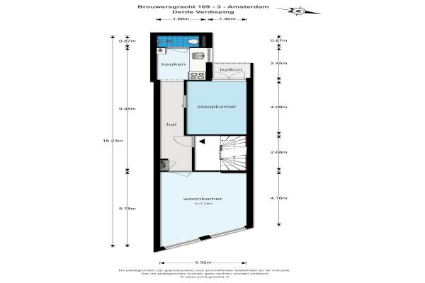 Het adres van deze woning is Brouwersgracht 169 te Amsterdam. Het pand heeft een oppervlakte van 40m² en heeft 2 kamers kamers waarvan 1 slaapkamers. De geschatte waarde van deze woning is € 315.000.