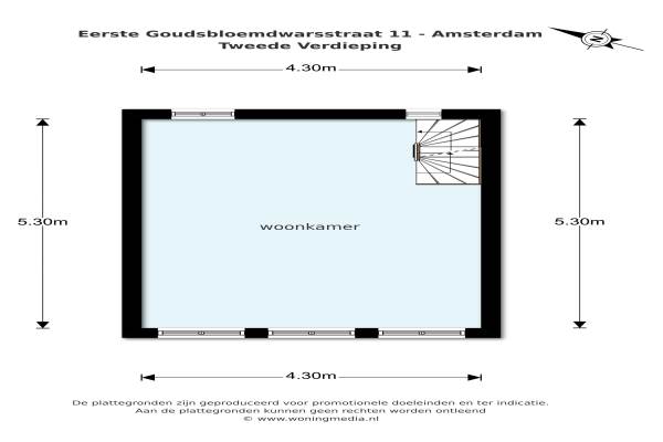 Het adres van deze woning is Eerste Goudsbloemdwarsstraat 11 te Amsterdam. Het pand heeft een oppervlakte van 88m² en heeft 4 kamers kamers waarvan 2 slaapkamers. De geschatte waarde van deze woning is € 700.000.