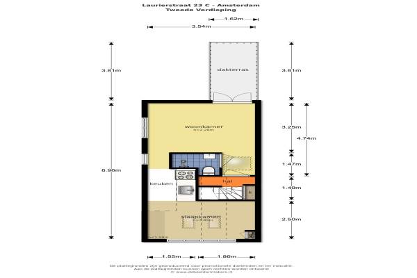 Het adres van deze woning is Laurierstraat 23 te Amsterdam. Het pand heeft 2 kamers kamers waarvan 1 slaapkamers. De geschatte waarde van deze woning is € 300.000.