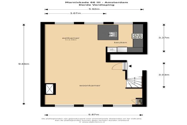 Het adres van deze woning uit 1905 is Marnixkade 66 te Amsterdam. Het pand heeft een oppervlakte van 96m² en heeft 3 kamers kamers waarvan 2 slaapkamers. De geschatte waarde van deze woning is € 725.000.
