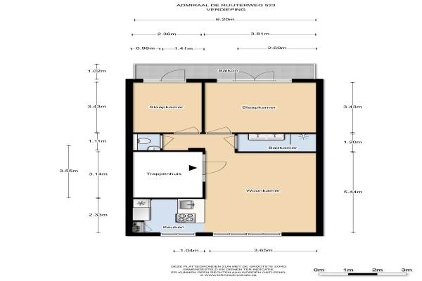 Het adres van deze woning uit 1925 is Admiraal De Ruijterweg 523 te Amsterdam. Het pand heeft een oppervlakte van 57m² en heeft 3 kamers kamers waarvan 2 slaapkamers.