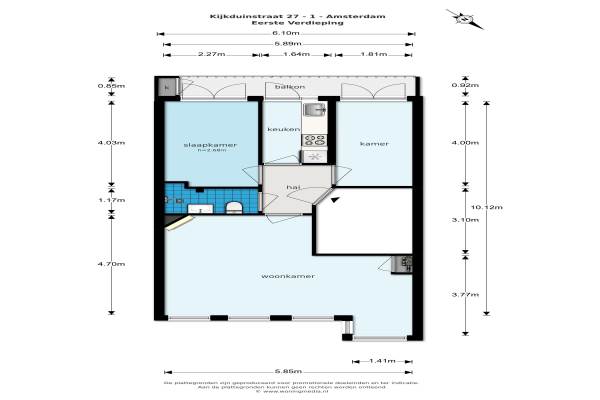 Het adres van deze woning uit 1934 is Kijkduinstraat 27 te Amsterdam. Het pand heeft een oppervlakte van 53m² en heeft 3 kamers kamers waarvan 2 slaapkamers. De geschatte waarde van deze woning is € 300.000.