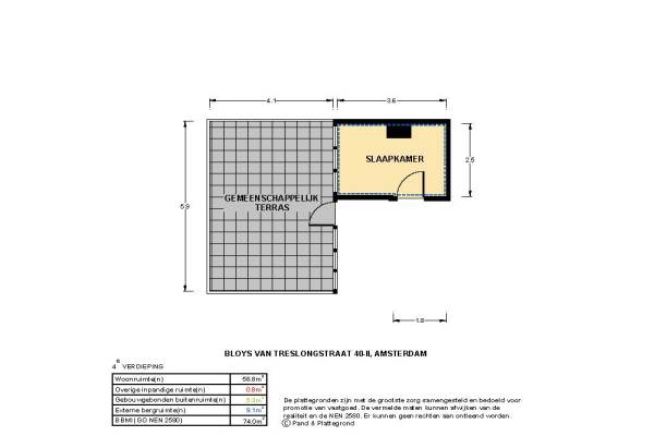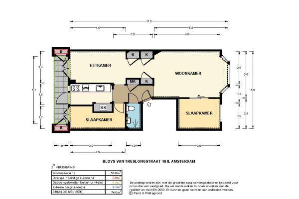 Het adres van deze woning is Bloys van Treslongstraat 40-2 te Amsterdam. Het pand heeft een oppervlakte van 59m² en heeft 3 kamers kamers waarvan 2 slaapkamers. De geschatte waarde van deze woning is € 290.000.