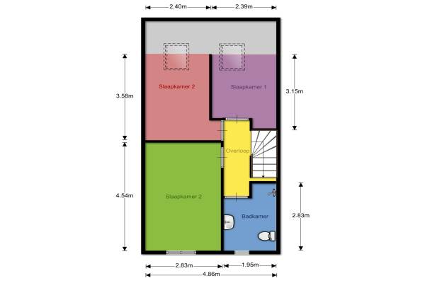 1 badkamer en 1 apart toilet