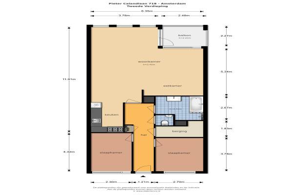 Het adres van deze woning uit 1999 is Pieter Calandlaan 718 te Amsterdam. Het pand heeft een oppervlakte van 100m² en heeft 3 kamers kamers waarvan 2 slaapkamers. De geschatte waarde van deze woning is € 285.000.