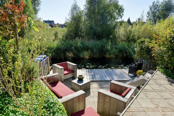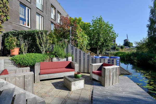 Aan water, aan rustige weg, in woonwijk, vrij uitzicht en beschutte ligging
