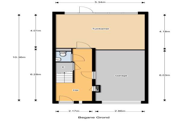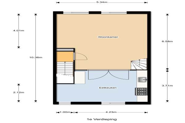 49 m² (8,57m diep en 5,71m breed)
