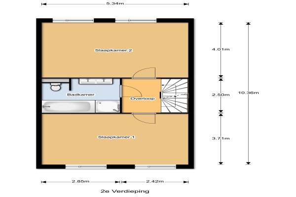 1 badkamer en 1 apart toilet