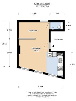 Het adres van deze woning is Ruysdaelkade 207I te Amsterdam. Het pand heeft een oppervlakte van 34m² en heeft 1 kamers kamers waarvan 1 slaapkamers. De geschatte waarde van deze woning is € 185.000.