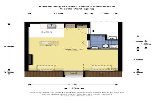 Het adres van deze woning is Rustenburgerstraat 2804V te Amsterdam. Het pand heeft een oppervlakte van 30m² en heeft 1 kamers kamers waarvan 1 slaapkamers. De geschatte waarde van deze woning is € 225.000.