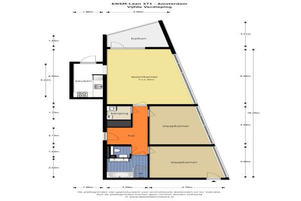 Het adres van deze woning uit 1995 is KNSM-laan 371 te Amsterdam. Het pand heeft een oppervlakte van 101m² en heeft 4 kamers kamers waarvan 3 slaapkamers. De geschatte waarde van deze woning is € 500.000.