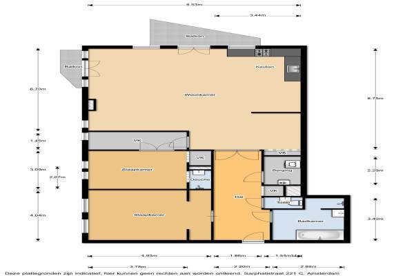 Het adres van deze woning uit 1905 is Sarphatistraat 221C te Amsterdam. Het pand heeft een oppervlakte van 140m² en heeft 3 kamers kamers waarvan 2 slaapkamers. De geschatte waarde van deze woning is € 815.000.