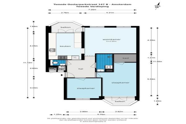 Het adres van deze woning is Tweede Oosterparkstraat 147 te Amsterdam. Het pand heeft een oppervlakte van 75m² en heeft 3 kamers kamers waarvan 2 slaapkamers. De geschatte waarde van deze woning is € 400.000.
