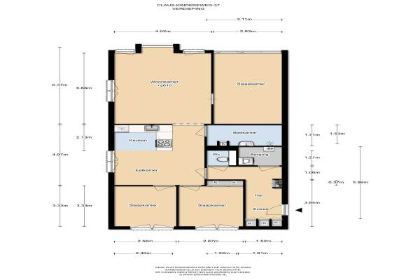 Het adres van deze woning uit 2005 is Clauskindereweg 37 te Amsterdam. Het pand heeft een oppervlakte van 101m² en heeft 5 kamers kamers waarvan 3 slaapkamers. De geschatte waarde van deze woning is € 275.000.