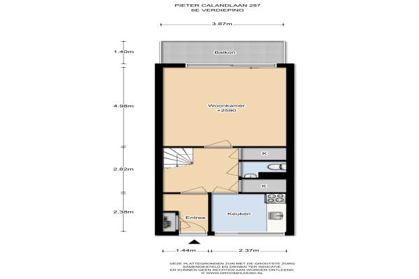 Het adres van deze woning uit 1963 is Pieter Calandlaan 287 te Amsterdam. Het pand heeft een oppervlakte van 81m² en heeft 4 kamers kamers waarvan 2 slaapkamers. De geschatte waarde van deze woning is € 215.000.