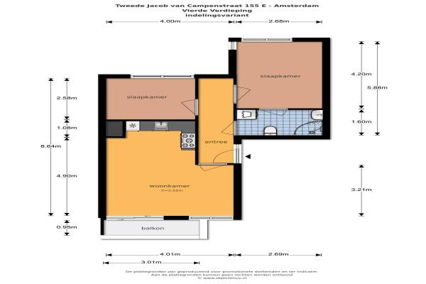Het adres van deze woning uit 1987 is Tweede Jacob van Campenstraat 155 te Amsterdam. Het pand heeft een oppervlakte van 50m² en heeft 2 kamers kamers waarvan 1 slaapkamers. De geschatte waarde van deze woning is € 325.000.
