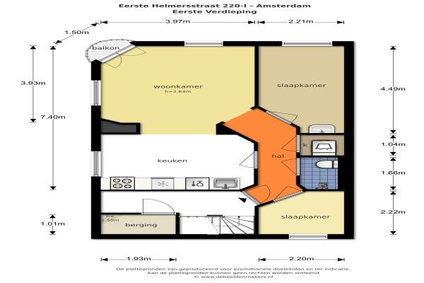 Het adres van deze woning is Eerste Helmersstraat 220I te Amsterdam. Het pand heeft een oppervlakte van 51m² en heeft 4 kamers kamers waarvan 2 slaapkamers. De geschatte waarde van deze woning is € 325.000.