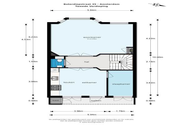 Het adres van deze woning is Boterdiepstraat 35 te Amsterdam. Het pand heeft een oppervlakte van 100m² en heeft 5 kamers kamers waarvan 3 slaapkamers. De geschatte waarde van deze woning is € 625.000.