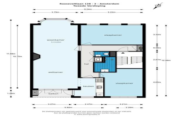 Het adres van deze woning is Rooseveltlaan 128 te Amsterdam. Het pand heeft een oppervlakte van 101m² en heeft 3 kamers kamers waarvan 2 slaapkamers. De geschatte waarde van deze woning is € 575.000.